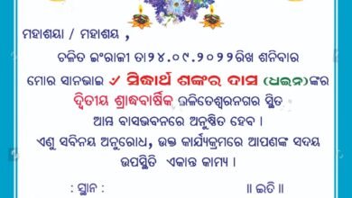 ଯାଜପୁରର ଯୁବ ସମାଜସେବୀ ସିଦ୍ଧାର୍ଥ ଶଙ୍କର ଦାସ (ଧଇନ)ଙ୍କ ୨ୟ ଶ୍ରାଦ୍ଧ ବାର୍ଷିକ ଆସନ୍ତା ୨୪ରେ